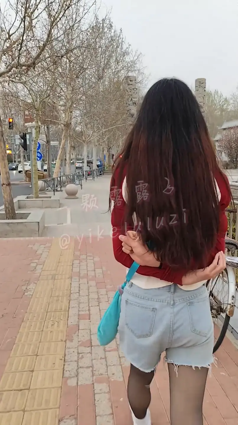 熟悉的衣服不熟悉的环境,热裤黑丝白棉袜,如果多仔细观察能看到背在后面不知所措的双手。日式捆绑全程不披衣服公园和小区和人行道散步,引多人注目观看。