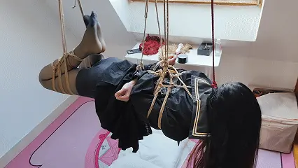 然而还没有结束,绑匪又把人质全吊在空中,不断鞭打和玩弄黑丝小脚,被吊起的露露只能不断挣扎和翻身来缓解折磨,直到————————下一次被绑的开始