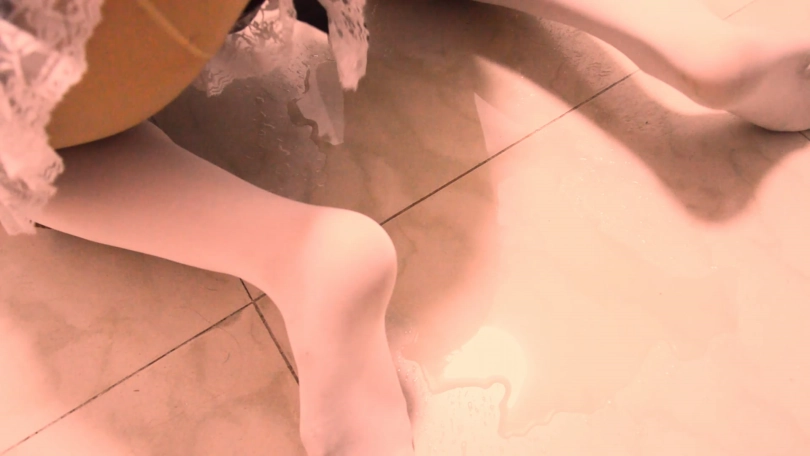 她先反手想用手打开瓶子,但自己是拘束手套,所以试了几次都没有用,于是她用丝袜脚夹起瓶子想打开瓶盖。女警丝袜脚试了好多次都打不开瓶子。