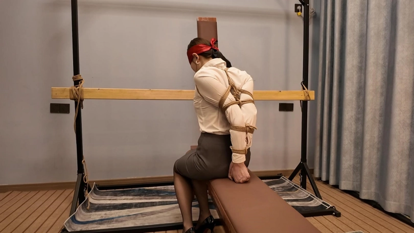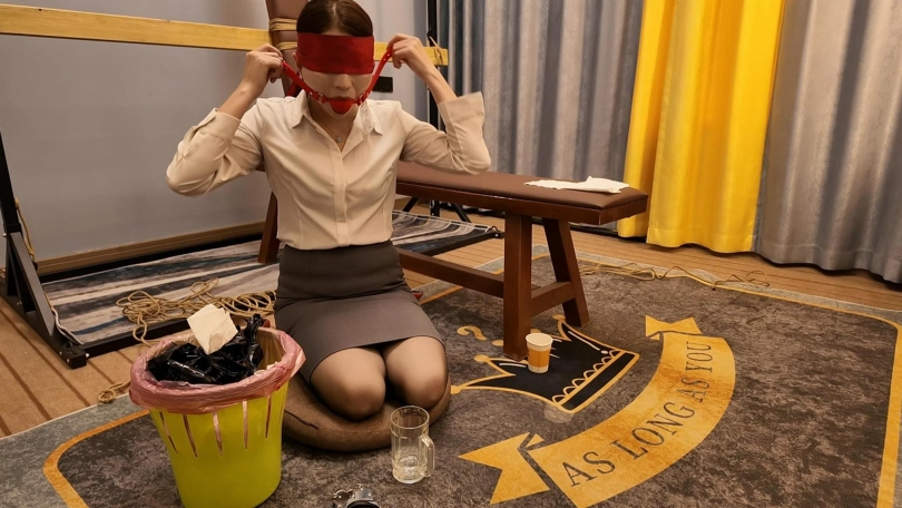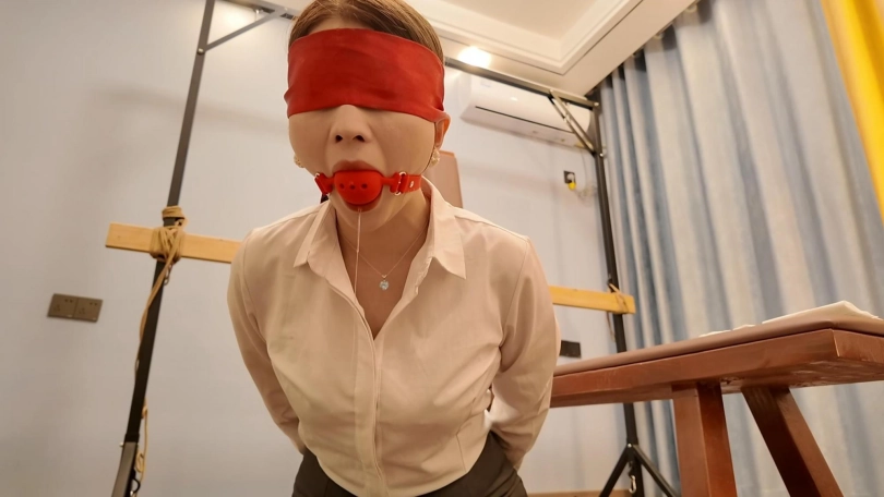 胶带捆的特别紧,也特别有感觉,接下来又给佳佳来了个欧式紧缚,这个客户是个资深爱好者,绑的特别紧,也特别好,佳佳柔韧性好不错,不过太紧了,不一会就受不了了,接下来的项目是柠檬口球口水收集,佳佳自己蒙是眼睛,客户趁着佳佳看不到,偷偷把口球换成最大号的,让佳佳自己带,真没有想到,超大口球竟然带上了,按口水流的哗哗的