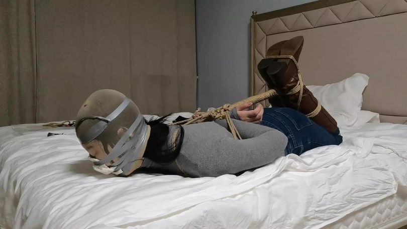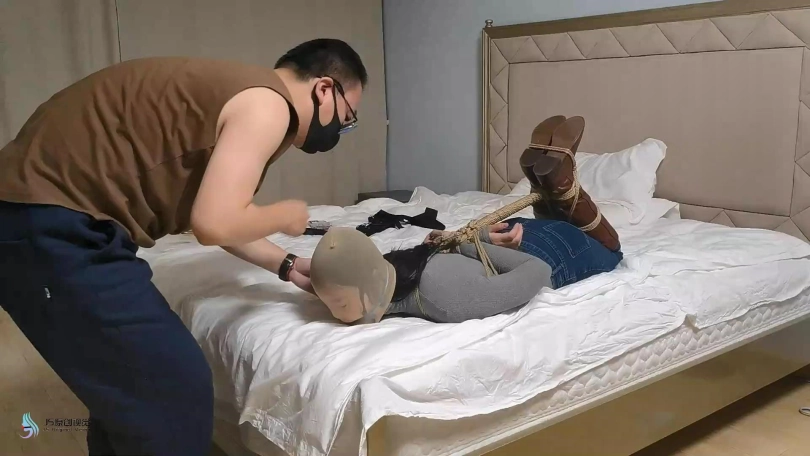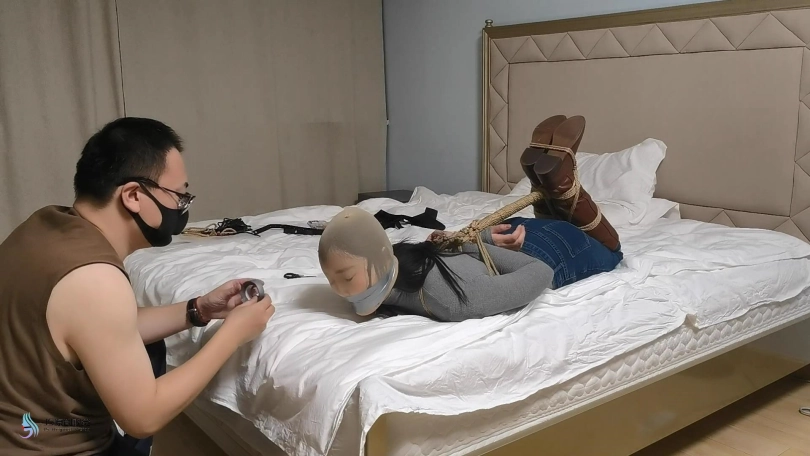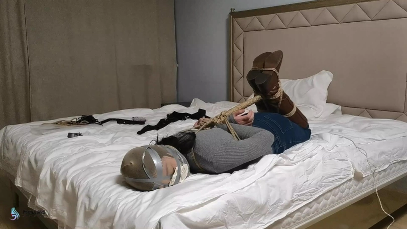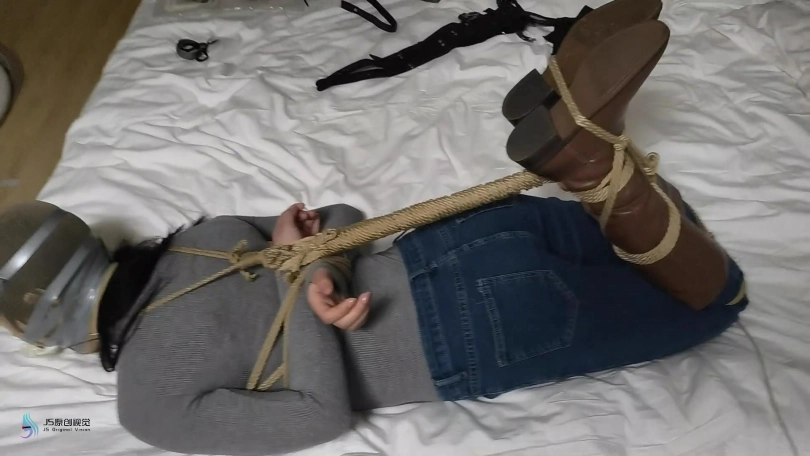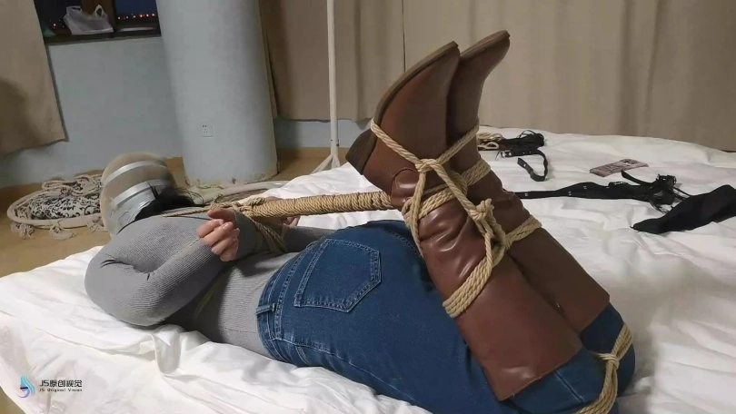 【JS】【哈妮】牛仔靴驷马捆绑丝袜堵嘴套头原味封鼻棒棒刺激