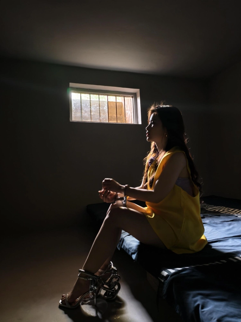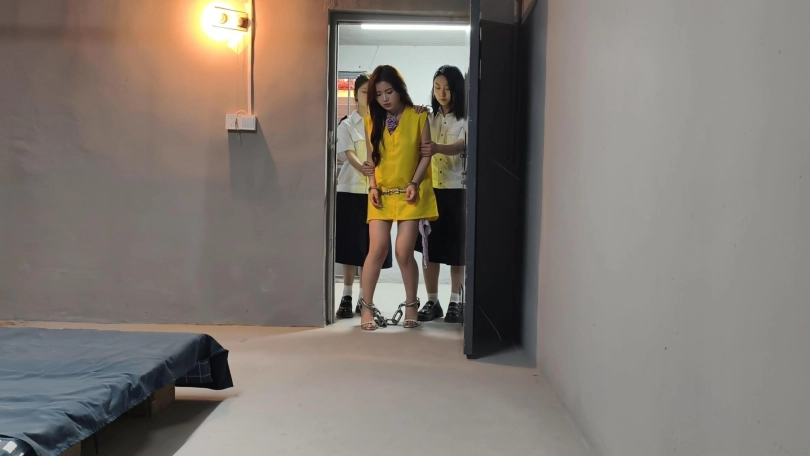 【忘忧社】模特糯糯出演女犯本系列第三部,四女囚系列之电信诈骗头目李真真在逃亡途中被抓捕,在各种审讯后终于承认了罪行,户外抓捕,手铐脚镣,30斤重脚镣让她寸步难行,高颜值模特倾情演绎