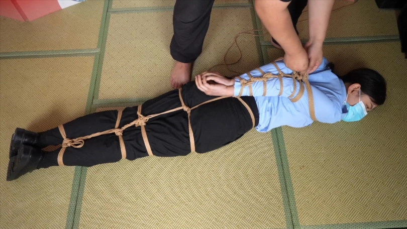 小0戴上镣铐展示,然后被直臂驷马挣扎