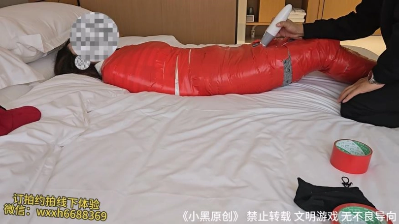 【小黑】新人女小白第一次接触,第一次见面全程真实对话,真实体验胶带全包木乃伊,棒棒挣扎,手铐项圈牵引