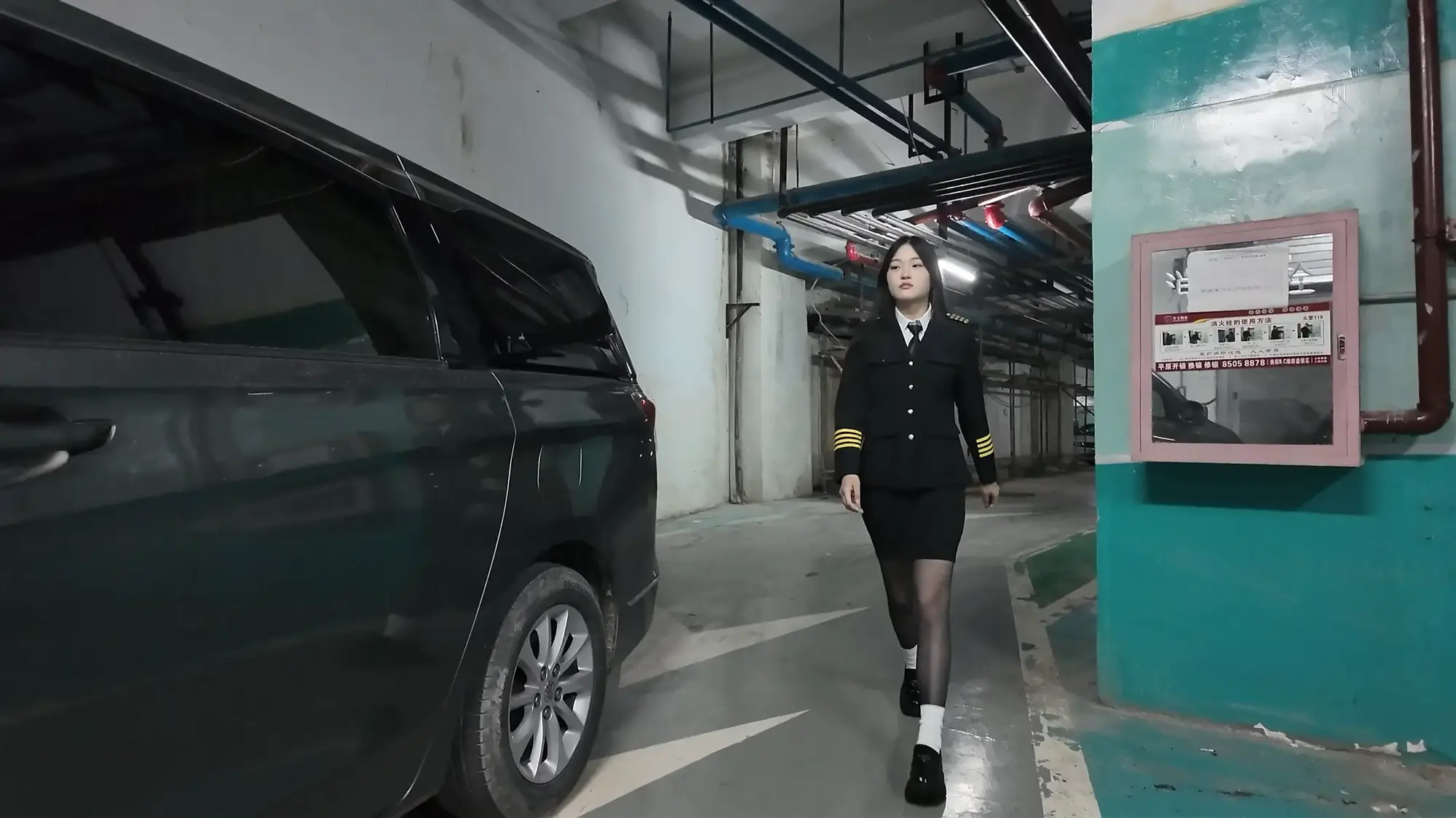 一直在暗处观察的老板来了,他坐进后备箱抚摸着小斐的脸和穿着黑丝的腿
