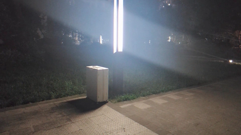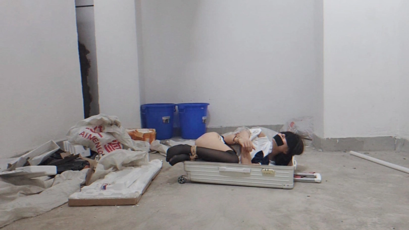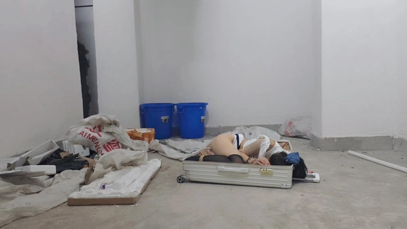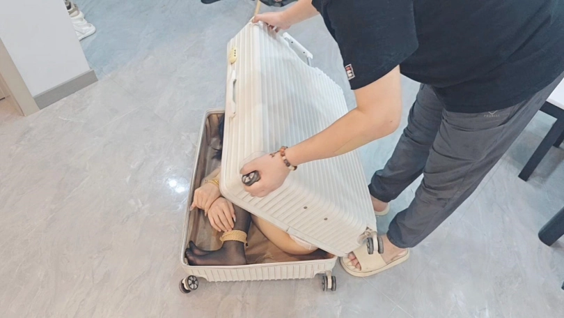 调教完之后,不够尽兴的s突发奇想,把小m捆绑好装进了行李箱,直接拖了出门,电梯,车库,小区,街道,垃圾堆旁,,各个地方进行放置,最后找了个垃圾堆直接丢弃离开,,,,,其实遇到正常人都不会怕,最怕的就是遇到那种流浪汉或者捡垃圾的直接把箱子捡走了就刺激了,,许久过后只留下行李箱里面传来不断的呜呜声和时不时的行李箱晃动的影子!