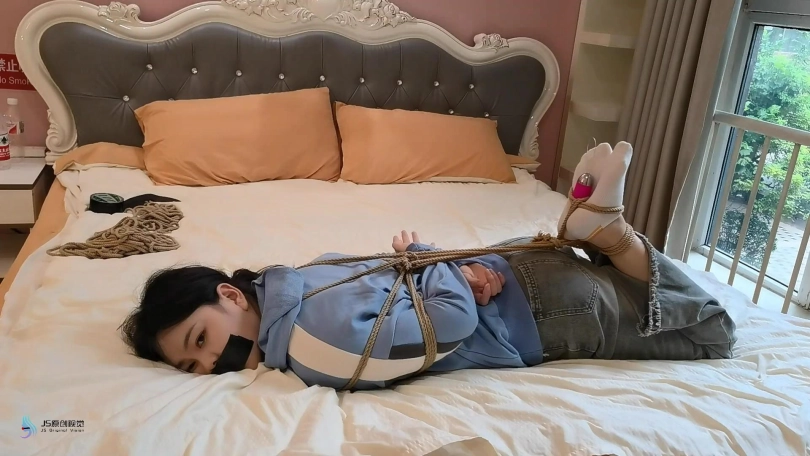 【JS】【梦琪】床上白袜驷马捆绑胶带封嘴TD刺激脚恋足