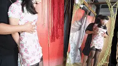 【象人】小0-旗袍吊带黑丝,镜中人,大量揉胸咸猪手!