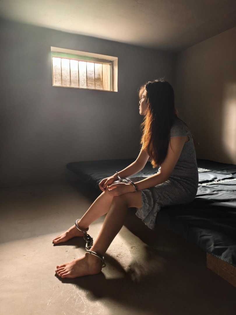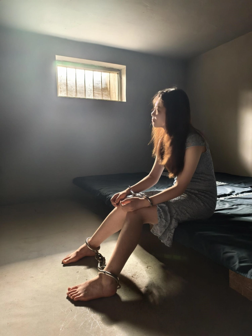 【忘忧社】美女身高170新模特依一被抓捕,吊铐,手铐脚镣,订死镣,最后被关入牢房。