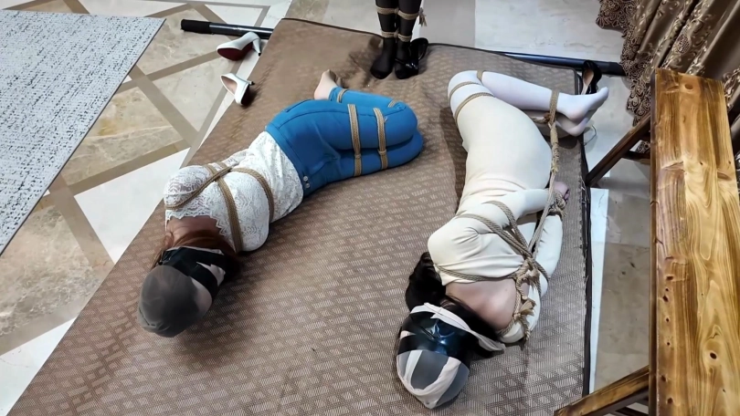 正义的诺澜并没有对这两个毒妇心慈手软,她将二人都用胶带捆绑缠头后,将二人连缚起来,让她们在绝望中接受自己的惩罚......