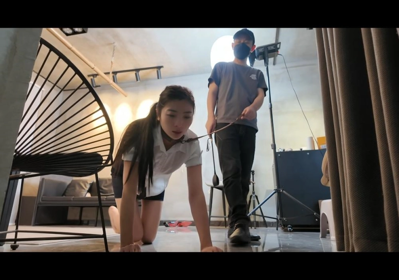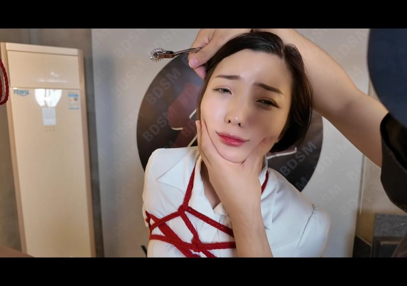 接神秘客户电话,要求把佳佳绑好送到指定调教室,长途,让佳佳轻松一点,给带上手铐,胶带堵嘴,带上口罩 出发,到了指定地方,敲开房门,先让佳佳跪在客厅,等待神秘客户调教,神秘客户对佳佳身材长相非常满意 捏了捏佳佳脸,不错 ,回屋拿出红色麻绳,先把佳佳单腿吊起来 ,不断的羞辱 鞭打,抚摸,折磨,让佳佳羞辱感满满,放下后拧佳佳熊部,一下子就给拧哭了,大声训斥,这是佳佳第一次被调教哭,含着眼泪,继续接受羞辱调教,带上专用项圈,最后绷不住了,趴在地上大哭,哭了一会爬起来继续接受调教,这次被神秘客户牵到一个小房间,房间挂满了形形色色的工具,跪好,接下来不知道等待佳佳的重度调教是什么