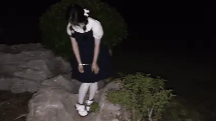 小萝莉苏苏今天穿着可爱的学生装和白丝,戴着手铐脚镣,塞好了尾巴,来到了车水马龙的街道对面,走到一处石头山旁,发现了一条黑色的丝袜,于是来到了长椅上开始脱自己的袜子,为了给她增加点难度,给她塞上了跳d,在刺激下苏苏轻哼着脱下了自己的白丝,露出了可爱的小脚,由于被禁锢着,换的很缓慢,换好黑丝后,又朝着前方走去~