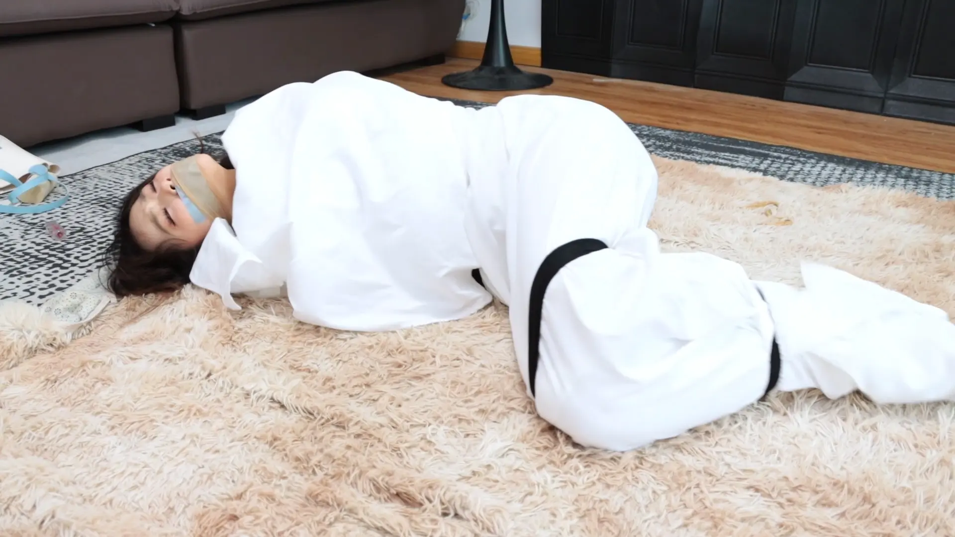 剧情框架:女孩意外把小偷堵在家里、小偷走投无路铤而走险。模特沈梦尘出镜