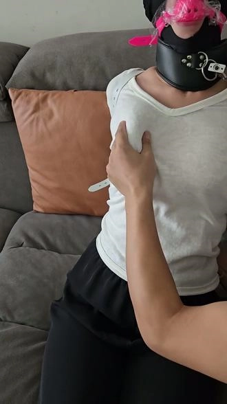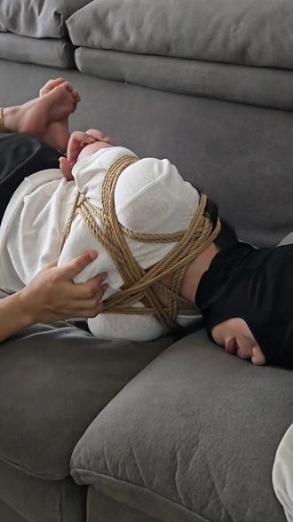 【小黑】新人端庄大胸淑女来体验捆绑,看到道具有点紧张,绑好以后更害怕了,单手套拘束大口球堵嘴,拘束好以后疯狂揉胸,内置[X_X]强高,五花驷马内置[X_X]强高