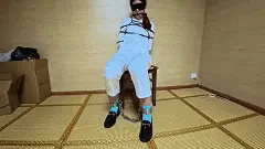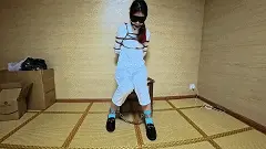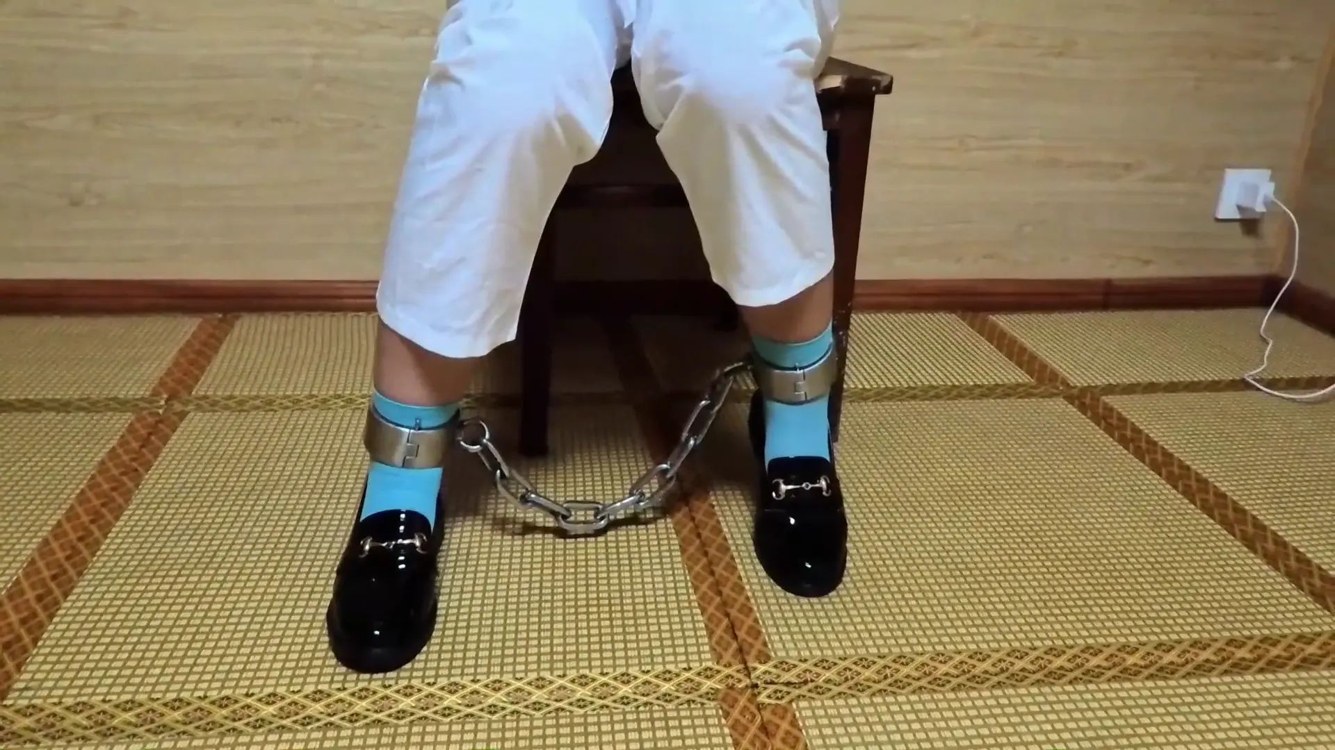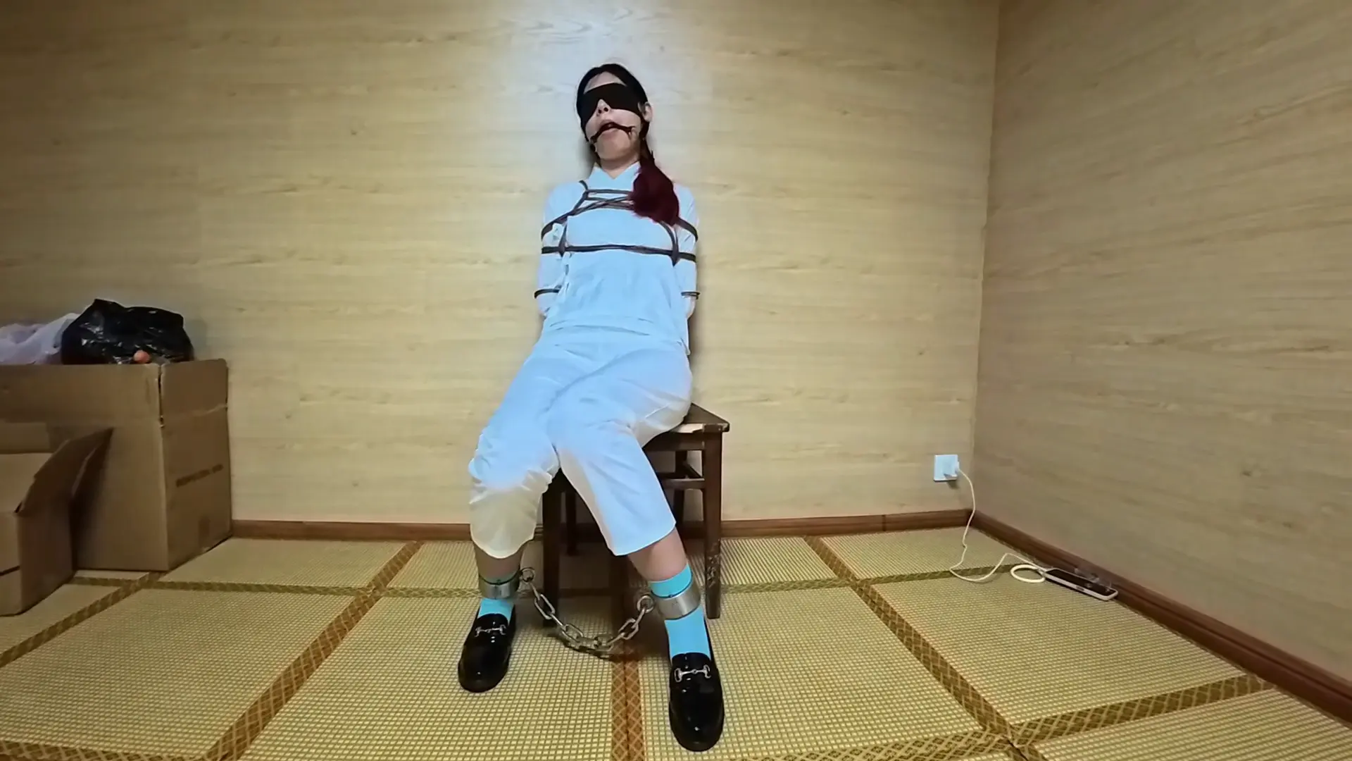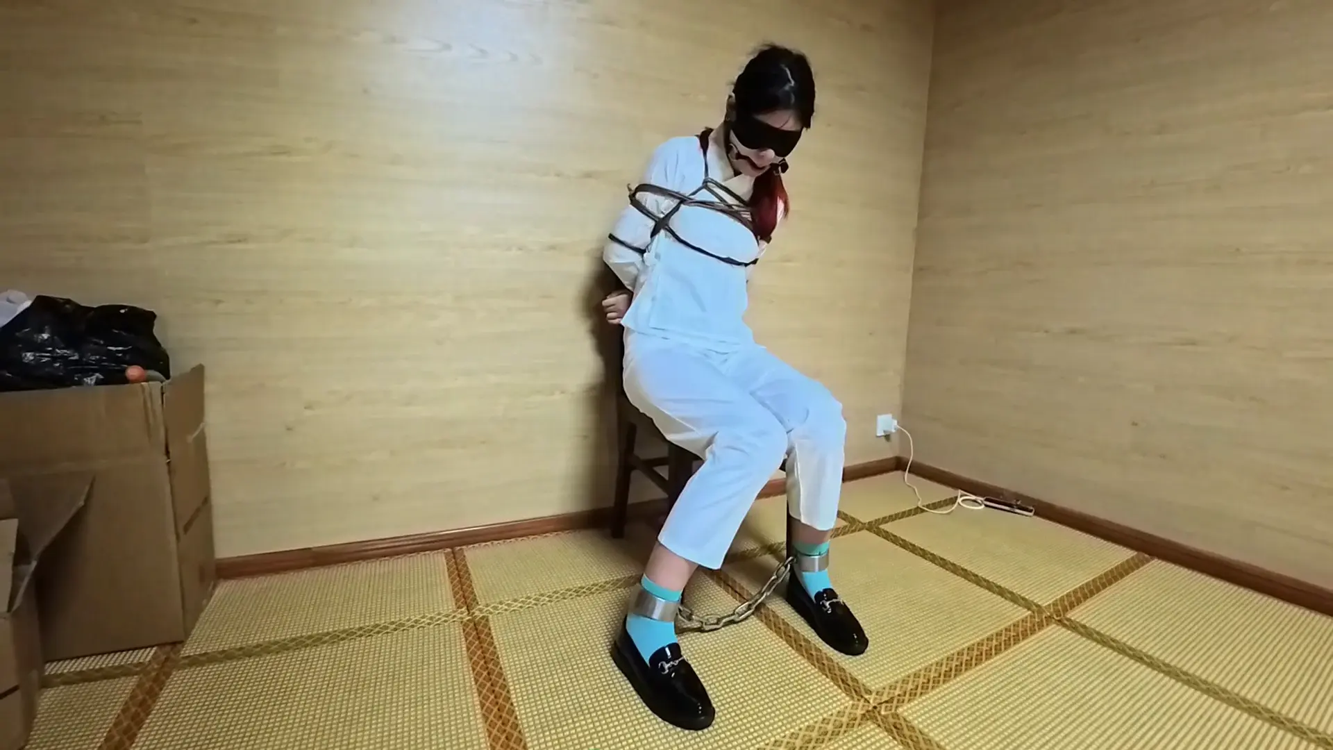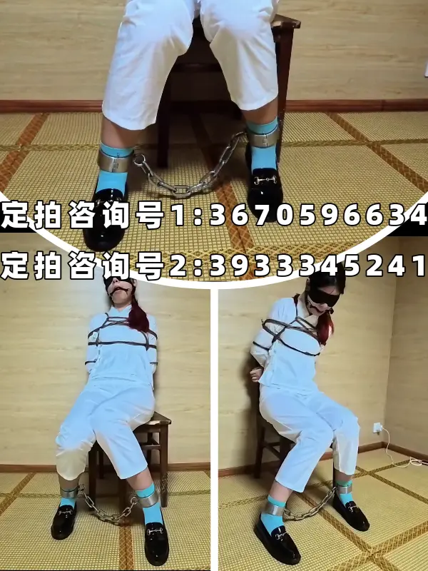 【渎竺】白色汉服(囚服),铁镣铐后手椅子缚!