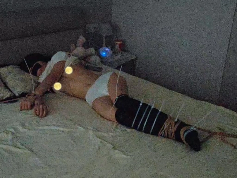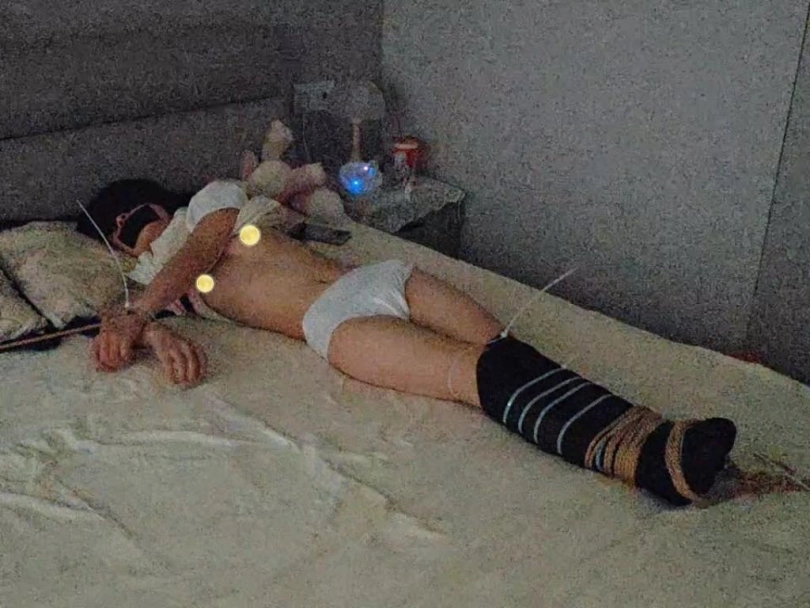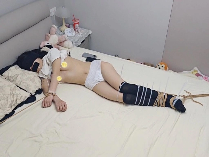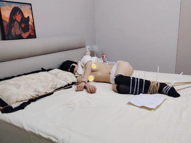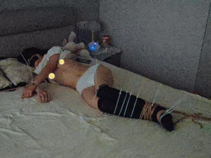 迷晕过后,带上尿不湿,扎带固定捆绑,外用绳子固定捆绑,基本无法动弹过后还是进行昼夜放置。就上纸条,中途的不速之客也是一大亮点,一番猥亵过后留下痕迹离开,天命过后的m依然继续被捆在哪里,无法动弹