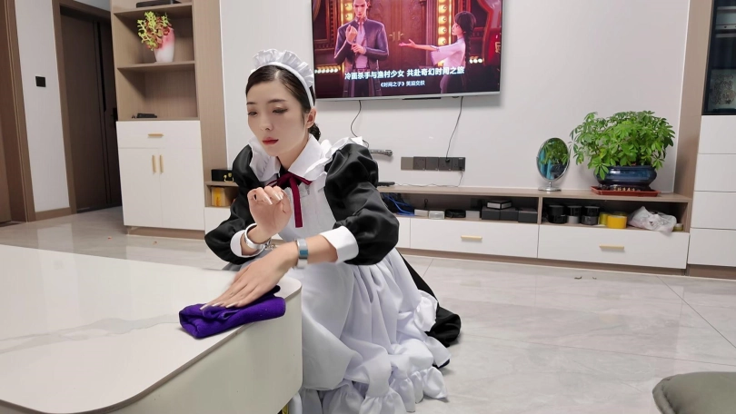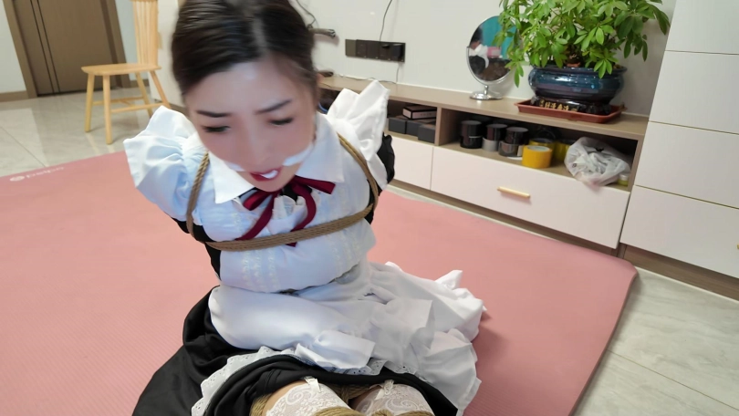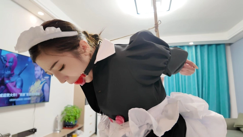 男子将绑架来的人妻装箱带走。回到家后开箱,经过一个月短暂的调教,佳佳暂时成为男子家中的女仆。不过这只桀骜不驯的小野猫似乎不太好训,于是男子借佳佳摔碎碗的契机,再次展开调教。他将佳佳绑好在客厅中,假装要离开。佳佳见机会难得,于是便努力挣扎,试图去到窗边呼救。就在佳佳快到窗边时,男子一把抓住佳佳,把她从希望的边缘一把拉了回去进一步调教。接着男子在客厅中吊起佳佳后手,给她戴上口球并且用绳子拉起口球带,强迫她抬起头,然后拉起裙子绑上股绳再扒开佳佳胸前的衣服,往两胸各塞入一颗[X_X]。只见佳佳被[X_X]刺激得口水直流站立不安,下身又被股绳勒住,只能不停地发出呜呜声祈求男子放过她。再往后,男子决心一步到位,接着将佳佳绑成个单腿吊缚,并且在下身加上个棒棒,两胸前的蛋也调至最高档,就这样,将佳佳调教至几近虚脱。最终,桀骜不驯的野猫终于被驯服,含住了象征屈辱和臣服的水晶柱,就这样佳佳调教成功,正式成为了男子家的奴隶女仆。开头的开箱环节是上回拍的时候让老哥顺便给拍的,开箱环节看得真爽。这回为了想看到的经典英伦风格女仆专门去按照佳佳的身材定了一件,白丝也换成稳重沉稳一点的,效果也是非常棒。全片一共三个段,因为时长和大小限制就先分成上下集了。老哥那拍摄的手法和认真程度真没的说,一如既往地敬业,我想看的就是这端庄典雅的女仆被一点点调教得下流,衣服从穿得整齐慢慢变成暴露又凌乱不堪,在这部里都给拍出来了。特别是佳佳这次化妆的妆容比第一集的效果还棒,挣扎的表演也是一如既往的卖力,第二段的时候戴上口球后口水流了满地。