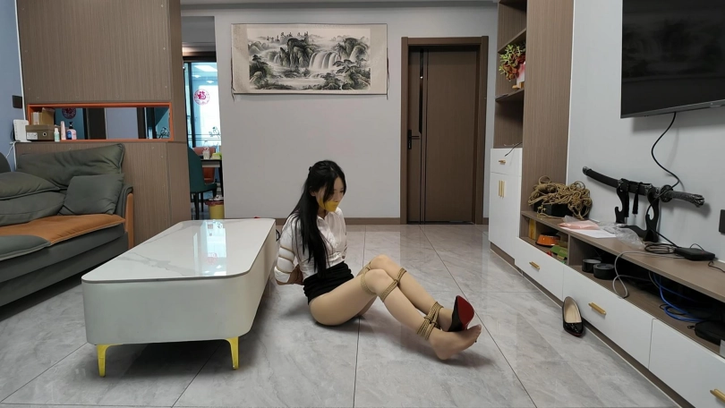 白领十一下班回家,没想到家里已经藏了一名歹徒,用刀威胁十一自己用胶带把嘴巴封起来,然后用绳子把手紧紧的捆绑起来,十一费尽力气挣扎想逃跑,被歹徒发现后捂晕,用多条丝袜封眼,蒙嘴