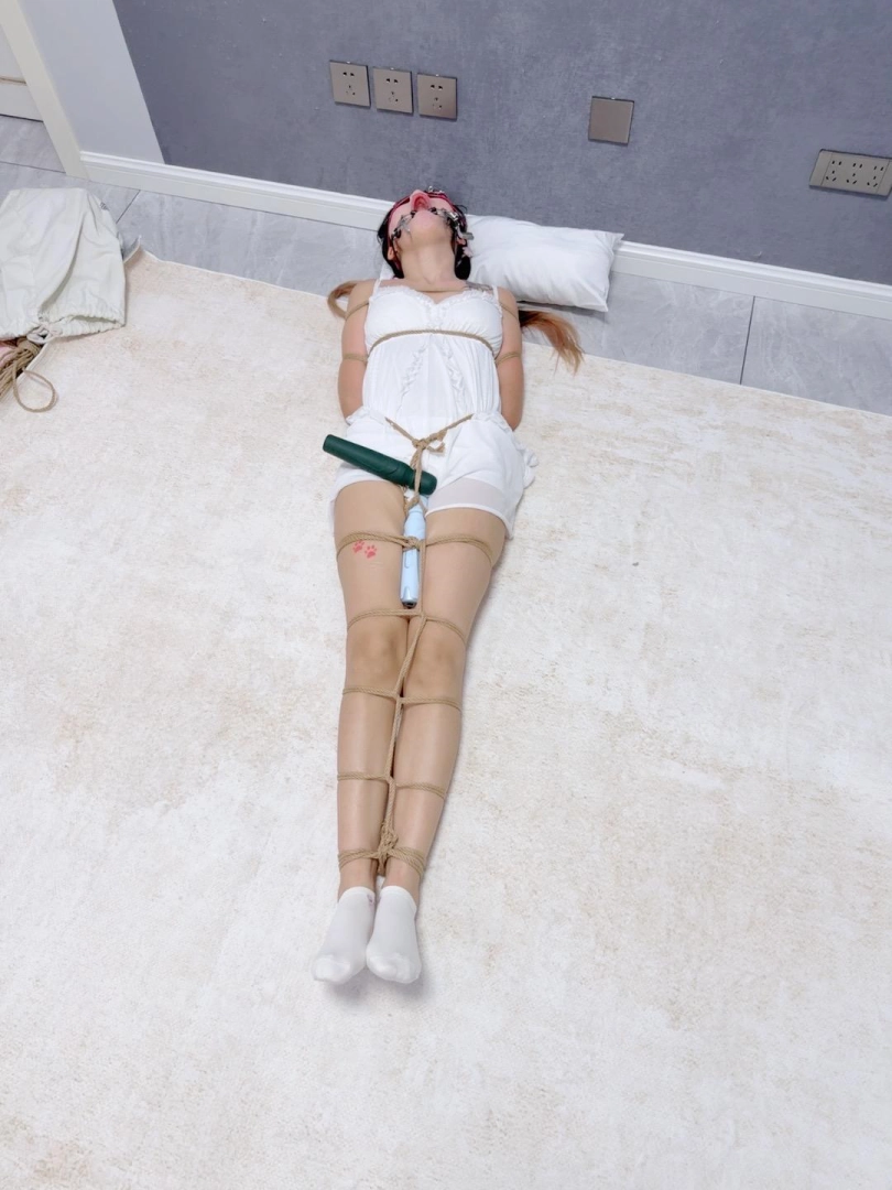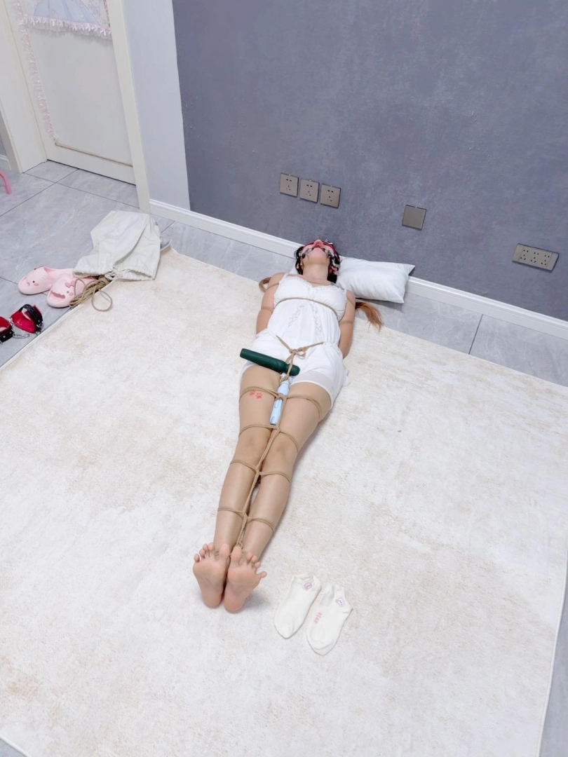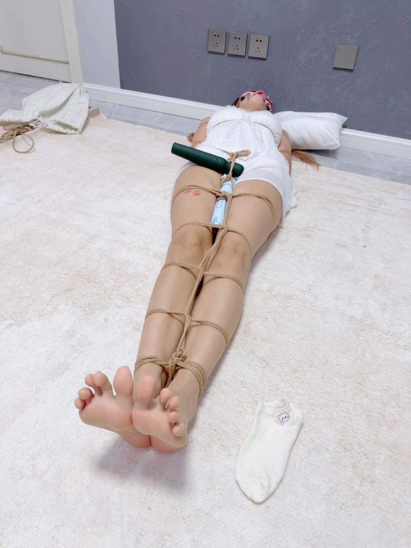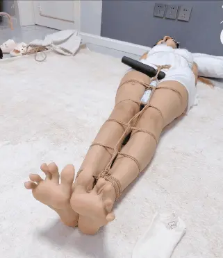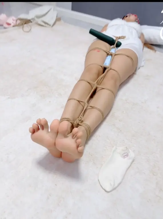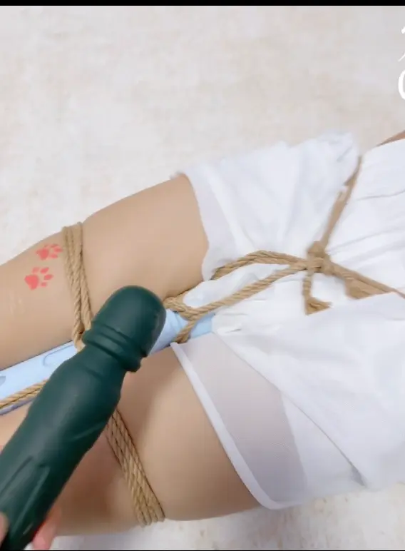 无需多言,上半身绑个经典日式,下半身做一个股绳,把新款电击极乐棒固定在绳裤上,然后双腿并腿拘束。