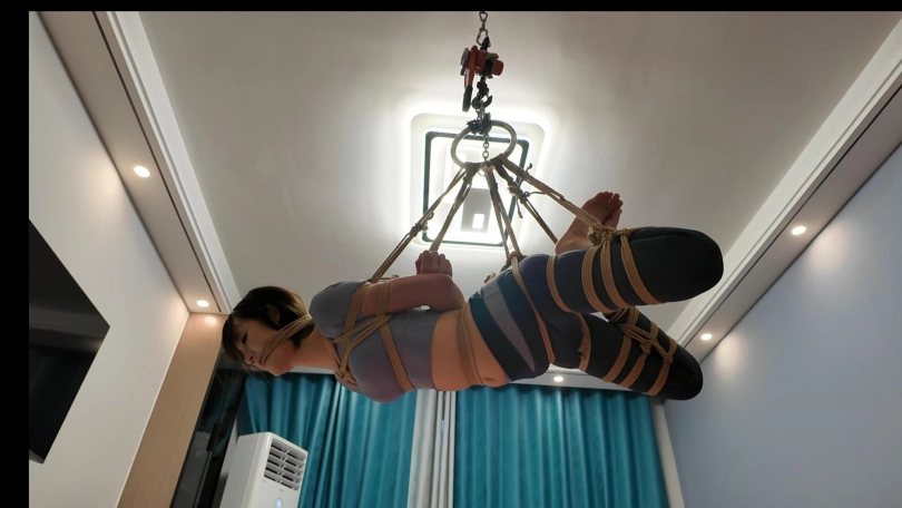 晓倩被驷马捆绑在地上,用滑轮组慢慢的升起,绳子勒嘴,最后把脸部还勒出血印子,最大口球堵嘴,再用胶带粘在口球外面,流出来的口水沾满一脸,再用丝袜勒嘴,一套下来,把晓倩全身绑出莎来了,折磨的浑身酸软
