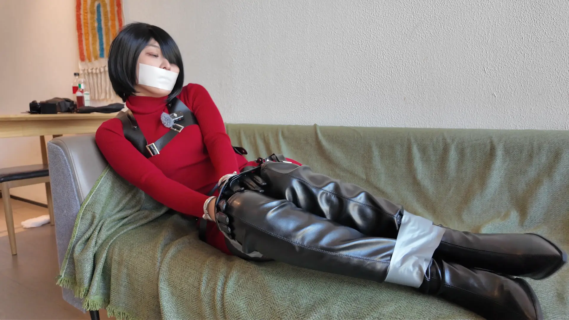 【Chrisgag cosplay】Ada 艾达王再次陷入困境!口球自缚却被入室绑架 龟甲缚过膝靴捆绑胶带封嘴