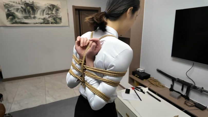 晓倩被后手观音,腿绑到椅子上,绑上股绳玩弄,口球,阳具口塞,口伽,丝袜,各种堵嘴,这是拍摄以来晓倩口水最多的一次,阳具口塞更是干呕不止