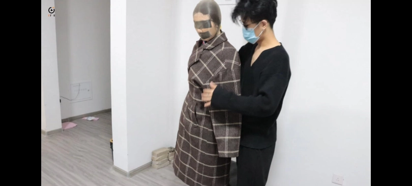 画面一转毒贩已经用黄色胶带将小楠上半身绑了起来(如图),然后让她自己走进了卧室。随后毒贩就锁上了房门。期间,小楠在卧室里来回走动,然后去到卫生间照了下镜子(给特写),五分钟后,毒贩走了进来,对她说:“货没有问题,你可以回去了。”小楠看了看毒贩丝毫没有给自己松绑的意思。随后小楠示意毒贩给自己解开胶带。毒贩不怀好意地笑了笑,说:“怎么?不想走了?”小楠听了疯狂摇头。毒贩说:“既然这样,那就。。”话还没说完,就把小楠抱进了屋内......