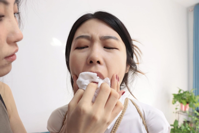 恩可拿出一条白毛巾,不由分说地塞进米娅的嘴里