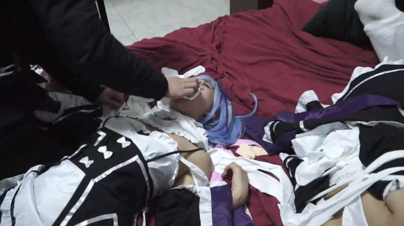 【逍遥】Cosplay拉姆雷姆之[雷姆的陷阱 - 下]刚才还在虐待拉姆的雷姆被入室的劫匪,和拉姆嘴对嘴永远绑在一起,丝袜全包