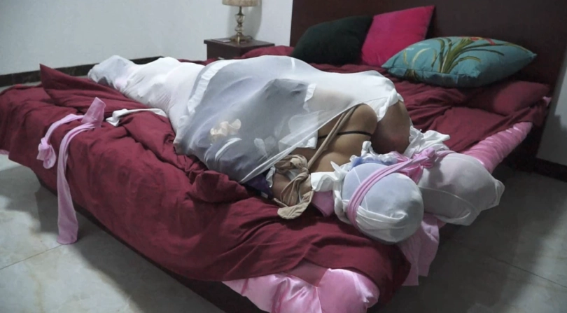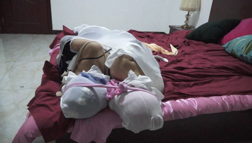 正在用捆绑捂晕,外加一点温柔缠绵拥抱来惩罚拉姆的雷姆,却突然发现屋子了有动静,原来是一名入室的小偷。慌张的她想用恐吓的办法吓跑小偷,但小偷发现面前的雷姆并没有呼救,便想把她绑起来,好一走了之。进入的里屋的小偷发现,原来雷姆绑架了别人所以不敢出声,没有顾虑的小偷将拉姆雷姆绑在一起,还拿一条大丝袜将二人紧紧包在了一起,嘴对嘴永远处于束缚之中