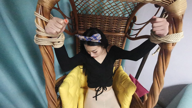 把她绑在吊椅上,带上口球和眼罩,胸部和[不可描述]分别用大小ZD棒伺候着,脱下靴子强制闻自己靴子的味道。并疯狂的闹其脚丫,一边被挠痒,一边身体敏感地方被刺激着,痒痒感和[不可描述]传来的快感同时体验着,只能无助的扭动脚丫和身体,最后慢慢变成无助的呻吟。。。