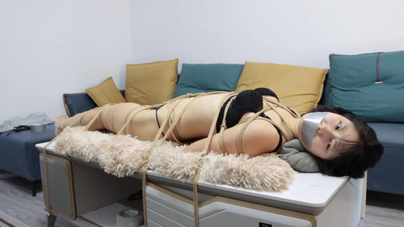 小七在玩女人方面从来不缺乏创意,可怜的清岚被小七捆成了人体家具,平时不但能置物,还能产生口水灭烟头,最最重要的是还能上下其手,挠挠脚心,摸摸屁股,小七玩的心满意足。玩够了就把清岚绑成人棍固定在茶几上,就这样清岚被小七玩了好几天,最终也逃跑不了被装箱运走的命运。。。