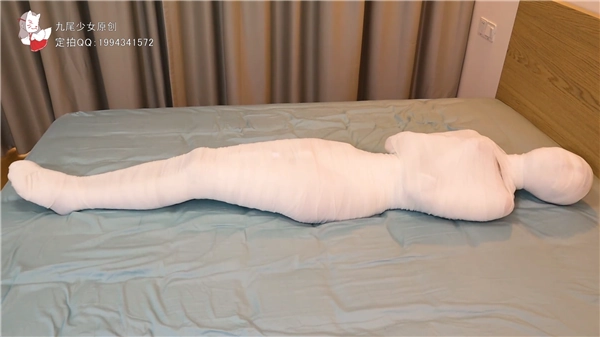 【九尾少女】小九尾绷带木乃伊多层全包初体验,白丝体操服,封闭双眼与听觉,多层绷带包头呼吸抑制,全包木乃伊封闭禁锢!