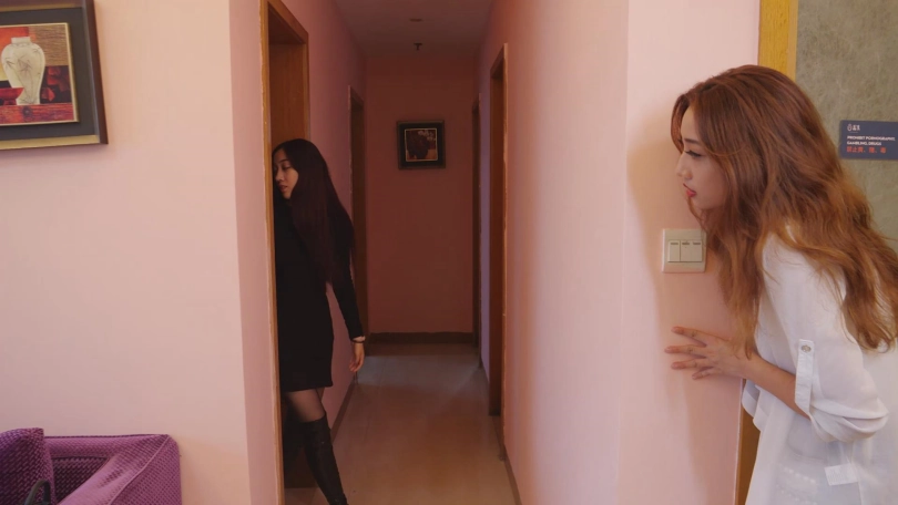 女主角悄悄从包里拿出毛巾,躲在客厅一旁,这时候女二号走了出来。女主角赶紧将其捂住,渐渐地女二号被迷晕了。女主踢了踢女二号,说:“真是便宜你了,这一下子,两百块钱又没了!”