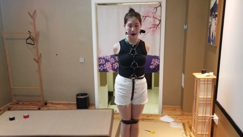 3号:束缚带若干,将挑战者上半身用束缚带捆绑。分别捆绑脚踝和膝盖。带口枷。挑战时间10分钟。