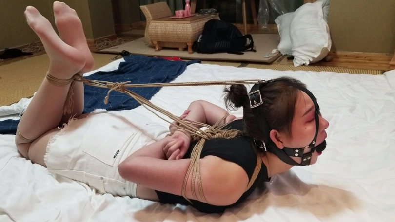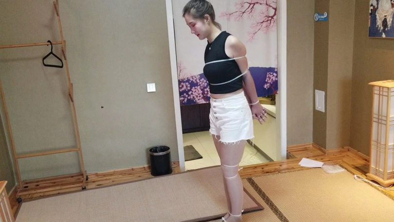 1号:长丝袜5双,短丝袜2双,长筒袜一双。胶带一卷。将挑战者双手背后用长筒袜捆绑捆绑,綁手腕抹肩拉紧。捆住膝盖上下和脚踝。双手短袜子套緊,用 胶带封住。丝袜嘞嘴。挑战计时10分钟。