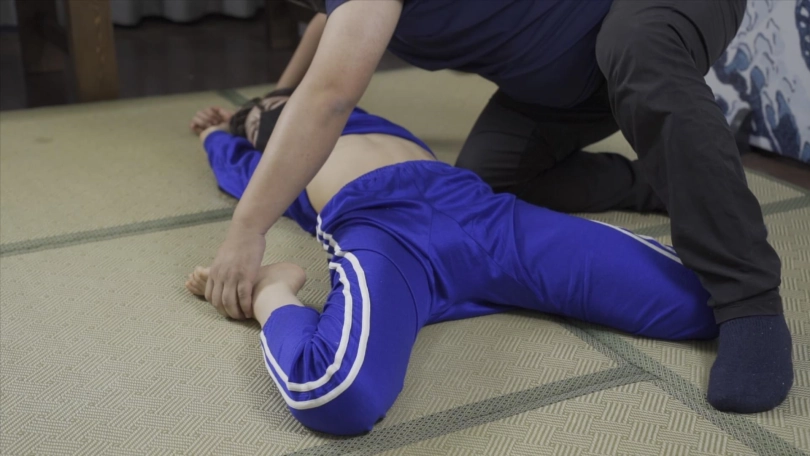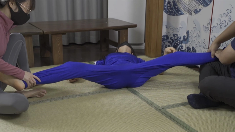 【象人】小0-蓝色校服+各种姿势掰腿,拉伸韧带,最后手腕脚踝极限驷马!
