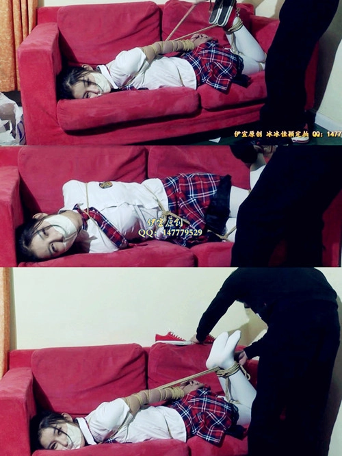 【伊宣】冰冰超紧捆绑外加金属,学生装白袜TK、胶布封嘴、胶带封嘴