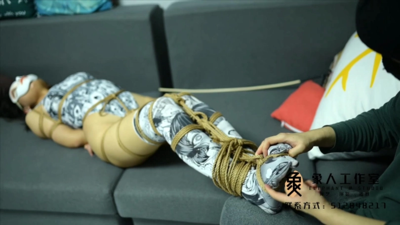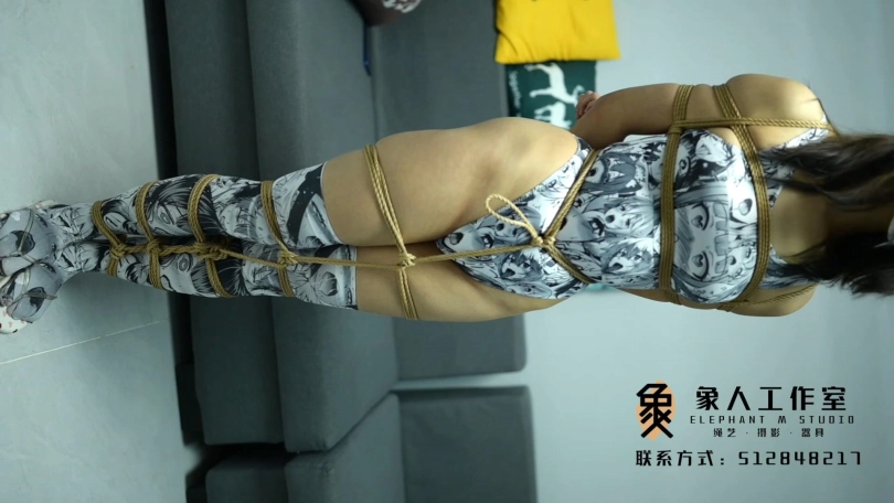 【象人】01小秋-漫画死库水+长筒丝袜,04毫米细绳日式全身紧缚,绑到脚趾。全身揉捏TK。