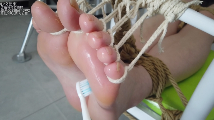 好嘛,不得不承认我是个死足控。筱筱这个脚丫怎么玩都不腻啊。紧缚上身和美腿,把一根根脚趾都固定在凳子上。一点挣扎余地不给留,抹上润滑油用道具挠痒痒。挣扎的好厉害,废了一个凳子哈哈。