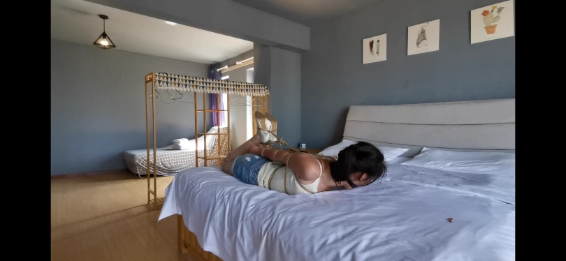 上次新约得模特,把妹子绑好后,外卖到了,出去拿外卖回来的时候,电梯坏了。。,独自绑了20多分钟~~。想要逃脱和声音都比较真实。