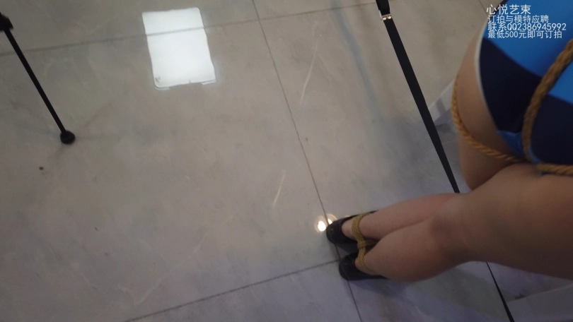 先是穿的牛仔裤,后面穿的泳装又用龟甲日式绑住,把脚踝绑上。尤其泳装的时候,屁股就是裸的,用木铲打的还是挺疼的。不过脚踝绑住了也没法挣扎,嘴巴也带着口球和开口器叫不出来,哈哈。
