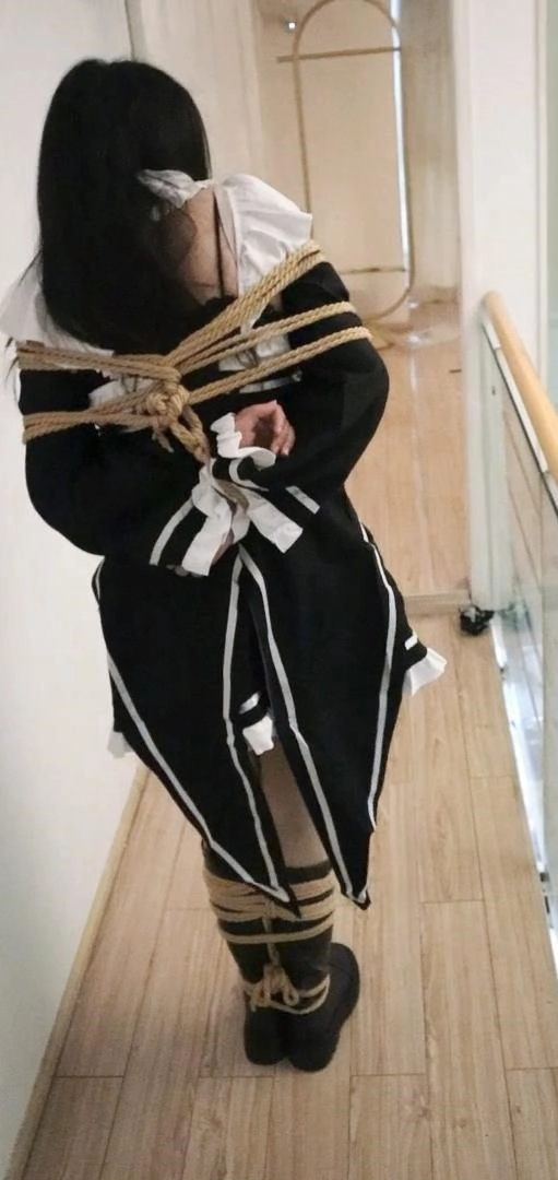 一开头 肉丝女仆的少女A 日式绑好 连皮靴上都捆绑满了绳子 手脚全部旁边 这么艰难的样子 少女A一蹦一跳的跳向房间里