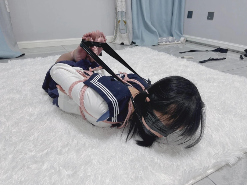 这次捆绑就不放水了,驷马拉绳子的时候直接收到最紧,没想到刚收了一半茶茶就开始叫腰疼了,害得我还是心软了没强行抬着茶茶脚和胸口拉扯,不过平拉已经拉到了极限,绑了个两头起的极限驷马。