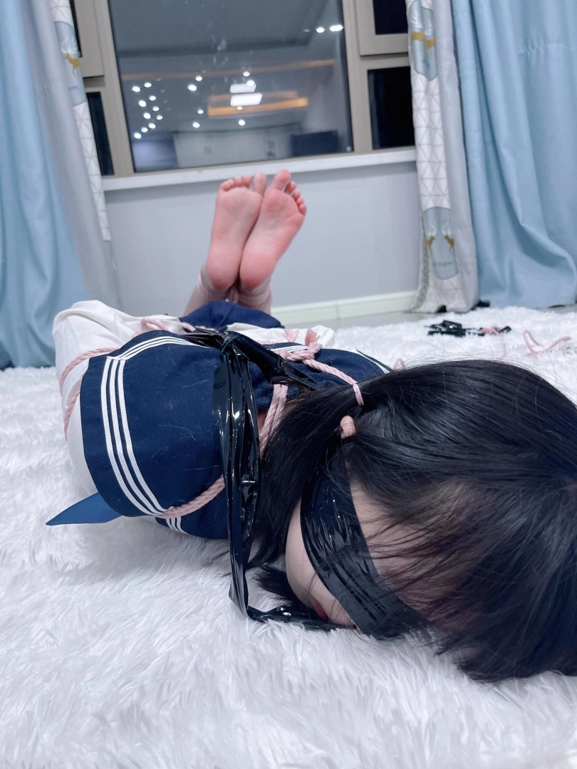 没过两分钟茶茶就开始就开始呻吟叫疼,我嘴上说坚持不住和我说,其实又拿出了静电胶带,把茶茶的小脑袋也强制抬起来,小嘴封上,并且把头和脚背用静电胶带绑在了一起。