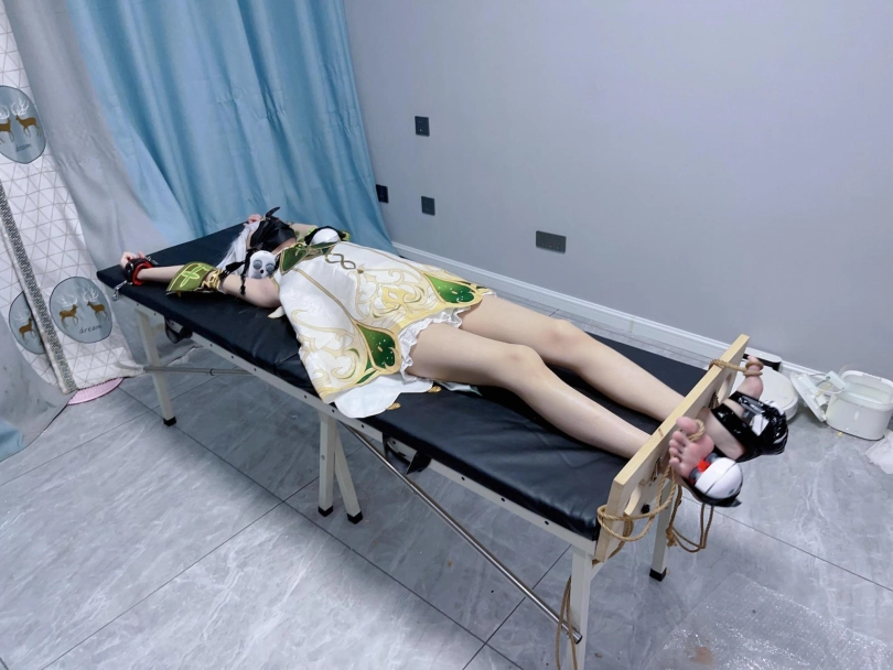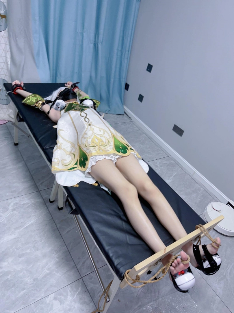 姿势:痒刑床+足枷(一定要固定脚趾)