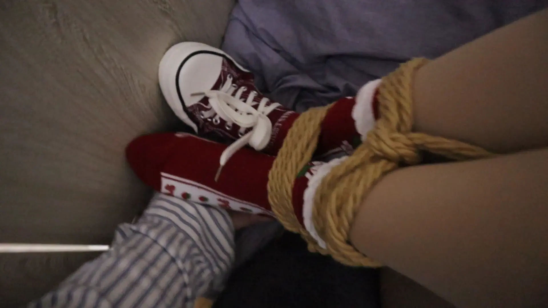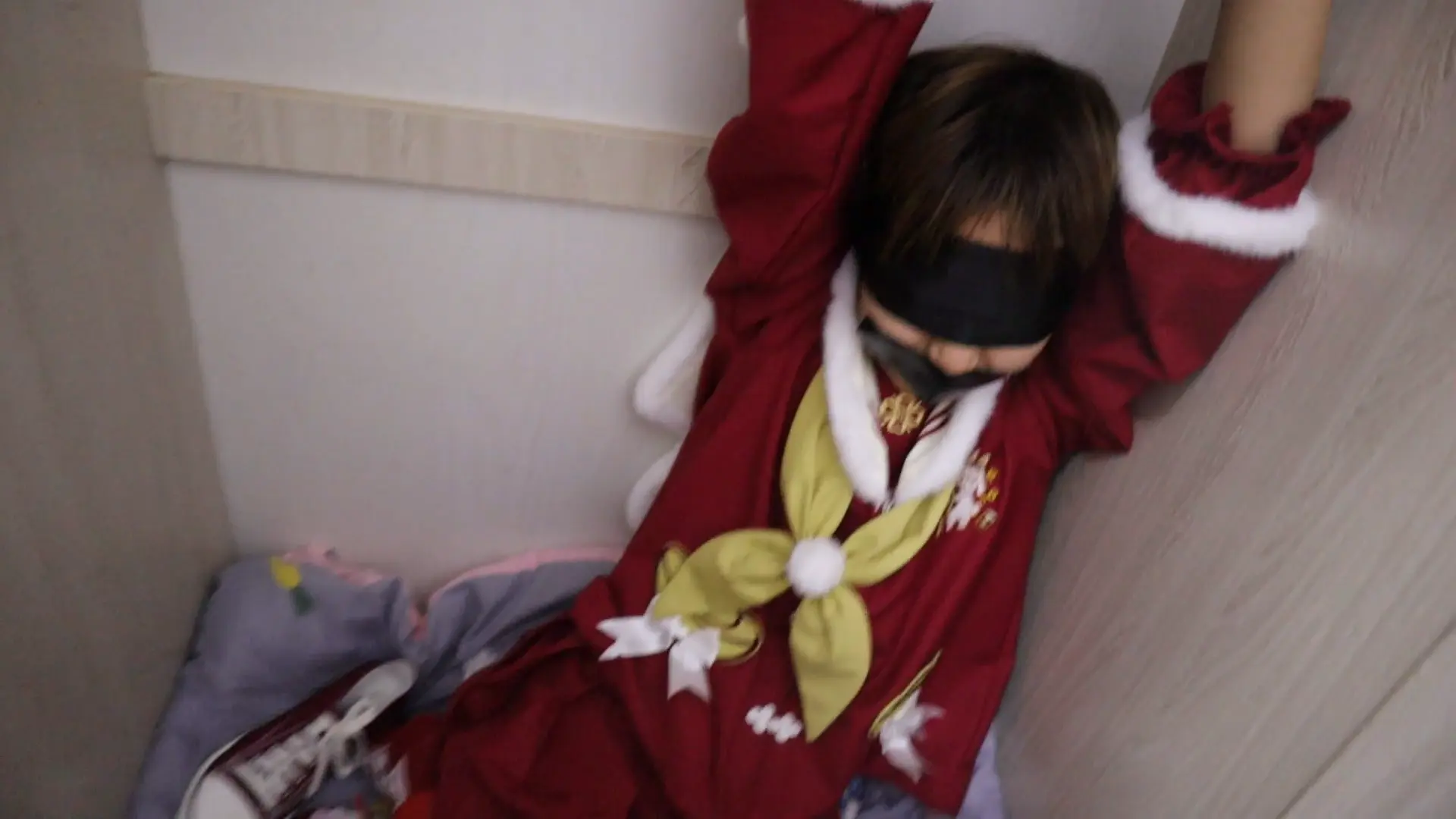 这衣柜里面怎么有这么喜庆的一个被捆绑的短发萝莉啊 铐撩与绳子分开绑