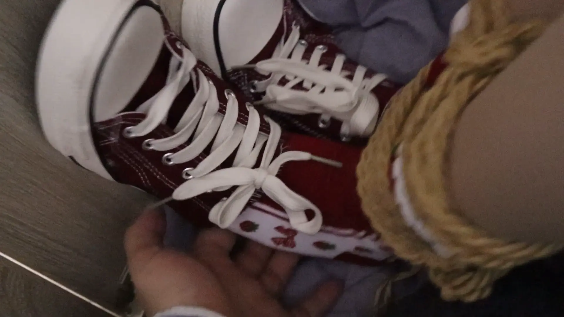 红衣红鞋红袜配 伸出脚挑逗一下,女孩呜呜呜的叫出声来,慢慢的玩到敏感点上面,