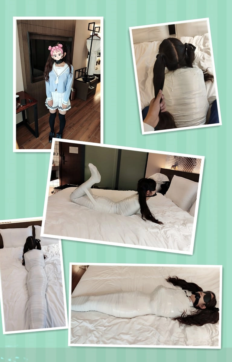 在包的过程中剪开袜子挠脚心,看小妹妹忍着疼痛绝望的挣扎。玩弄过后再把小妹妹的小脚也用胶带和保鲜膜封死。把少女做成真正的人形木乃伊~