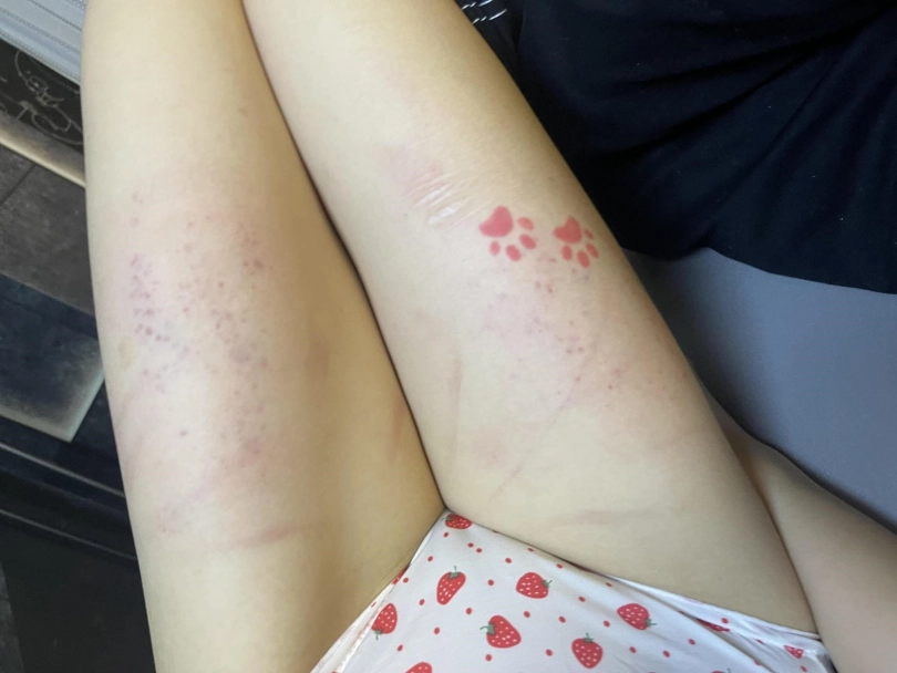 先是背面打屁股和大腿根,然后正面重新绑一次再打大腿内侧、大腿根、小腿~